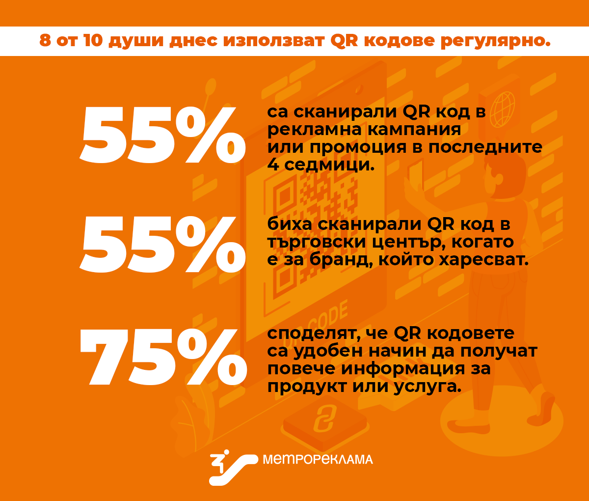 Today we are once again paying attention to this advertising element, as we are noticing its increasing effectiveness. A recent study conducted by Shopper Media shows that QR codes are increasingly successfully integrated into the daily lives of each of us. The study indicates that 8 out of 10 consumers regularly use QR codes, which is a remarkable progress compared to their number a few years ago.